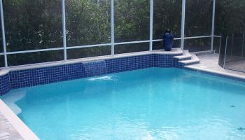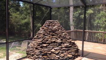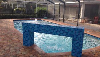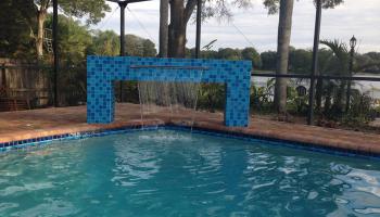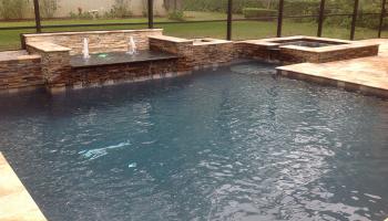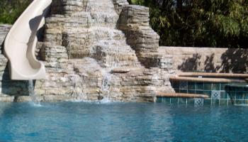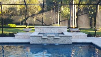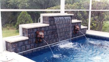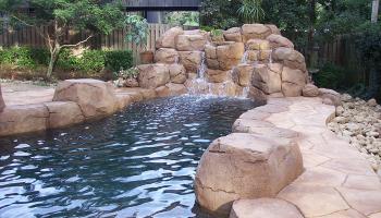 Lighted cascades, waterfall, ledger stone Custom waterfall with granite spill over